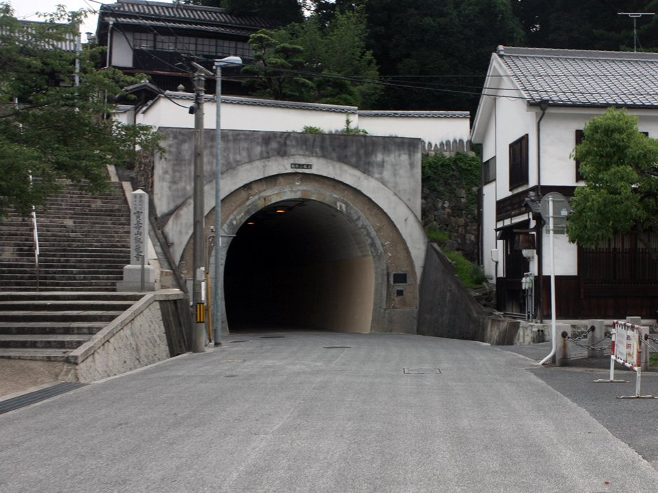 | Monument | 大正15年5月22日畏くも皇太子殿下我倉敷町に行啓在らせられ町を挙って誠歓誠喜抃舞已むなく乃ち此の光栄を永久に記念せむか為同年5月27日本町会は鶴形山隧道開鑿のことをしたり其の延長58間にして昭和2年3月10日工を起し同年11月30日其の功を俊へたり |